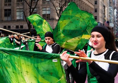 Everything green filled block after block up the route and new greeted new at St. Patrick's, cathedral that is, home to newly installed Archbishop Ronald Hicks, who welcomed newly elected NYC Mayor Zorhan Mamdani, a first in the history of the parade.