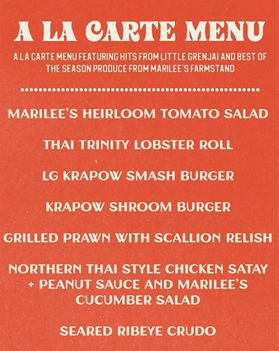 Join Sagaponack Supper Club on Sunday, August 17, from 4 to 8 PM, as they celebrate the best of season produce from Marileeâs Farmstand and the mouthwatering Thai-American flavors from Brooklyn's Little Grenjai.