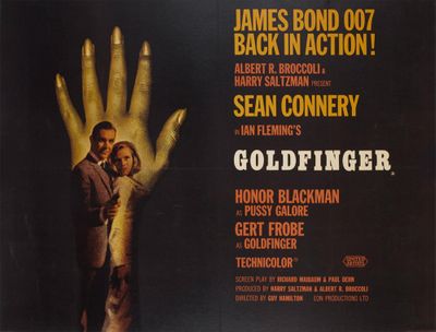 Goldfinger, 1964, United Artists, Quad Poster, Style B (for Ireland), art by Robert Brownjohn, currently selling at Orson & Welles for $21,000