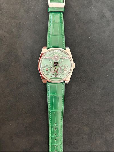 GENEVA, September 2025 — Among the independent watchmakers at this year's Geneva Watch Days, Emmanuel Bouchet stood out — along with his Complication One Aleph, a striking green timepiece with transparent sapphire subdials.